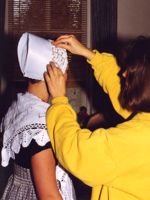 Le costume des femmes est attaché uniquement par des épingles, sans boutons ni fermetures éclair. La coiffe est elle aussi fixée par des épingles. Plus d’une heure est nécessaire à une femme pour s’habiller. Les hommes aident les femmes à épingler le tablier à la veste. Selon certains, là est le secret du grand nombre de danseurs à Piermachochel.